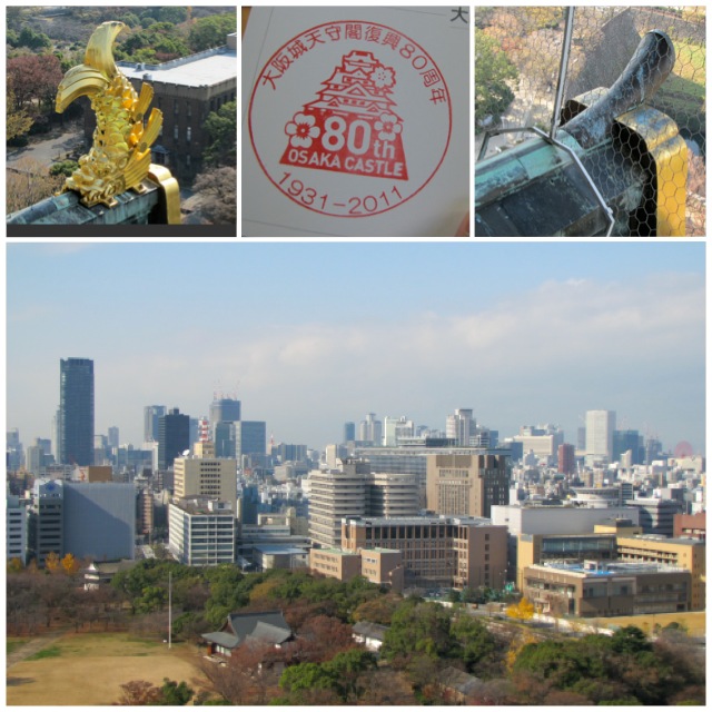 不過我來這就是為了去大阪城的最高樓層瞭望台,環瞰整個大阪,上了幾層樓梯之後,當眼位置有指示就是提醒你要不要心臟驟停急救器,對於上氣不接下氣的人真的很貼心啊!我當場就笑出來…=.=在瞭望台有點冷沒有久留,環雇一周就離開了!