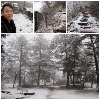 早上7點鐘,去梳洗一下然後又吃大田媽準備好的早餐,當我睡眼星松去澡室,一陣冷風吹到我身上都滕滕震!走過去把窗關掉之際,淨開眼就看見外面正下雪呢!Amazing!