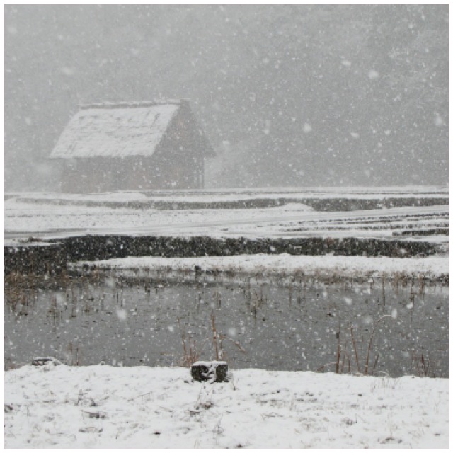 爭取時間下山到村內走一圈,積雪不多路也不難走,套上雪鞋算是輕鬆自如,如果像是積雪高過一個人的那種,我想又是一番不同於初雪的體驗、景色,下雪的第一天,大部分房子、路上都舖上白雪,並沒有積雪的