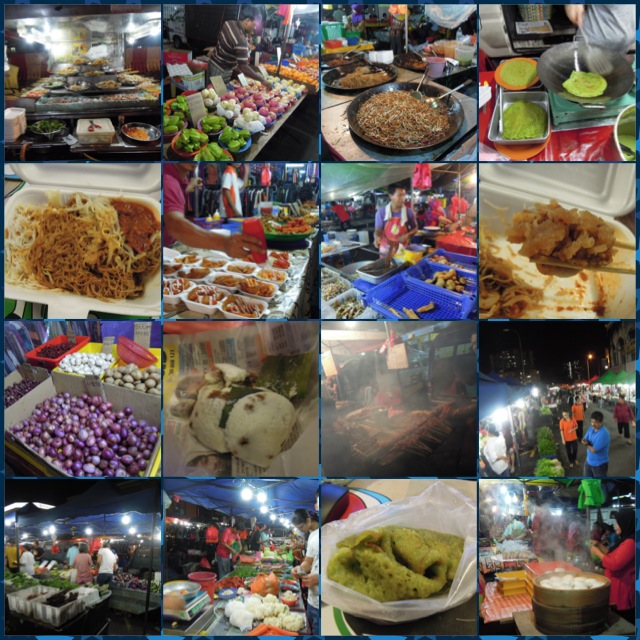 連日下雨,終於在最後一天晚上沒有下雨報時了,朋友帶我去家附近的夜市逛,就在這邊買吃的回家解決晚餐,我都看不太懂這邊賣的東西是什麼,最大的水果市場就是賣榴槤的,經過幾個攤檔一整排都是榴槤,可惜我都不愛吃,其他攤檔都好熱鬧的在叫賣,有衣服的、雜糧賣菜的,還有很多不同吃的東西,晚餐我都讓我朋友作主,吃什麼我真的六神無主,最後買了一盒有三種米粉的、xx卷、茶果薄餅、豆腐花,吉隆坡的道地美食都很好吃呢~同時也被朋友虧說在香港沒有吃過東西嗎…我不以為然呀,去別的地方都是吃東西吧,第一次吃的話好吃不好吃就是第一印象,更何況吃慣香港的美食,當然難免會「隔離飯香d」吧!
