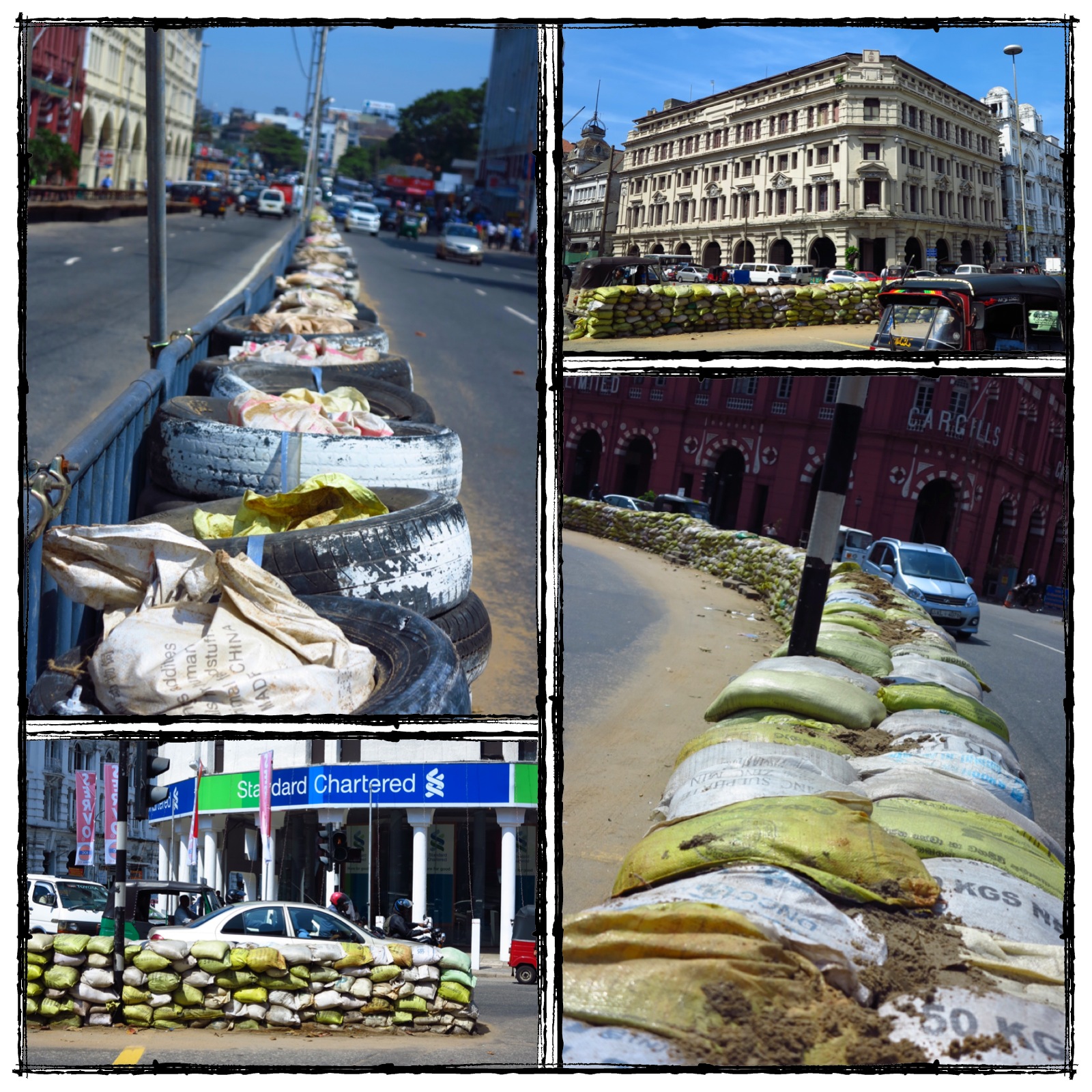 在市區CBD有著很多殖民色彩的建築蠻美的,可惜一直困在建築群裡想走去海旁卻去不了,有些路已經被封鎖且有軍人佩槍把守唷,路上也有很多士兵哨站,馬路都堆放一米高的沙包以及架著鐵絲網,心想該不會在市區發生可怕的槍戰吧,萬一有槍戰我該如何自保?經過士兵哨站就問一下軍人可不可以去海邊?他說已經封鎖了,可是我也不曉得是完全封鎖還是局部封鎖某一段路?我只想知道可有其他的路前往海邊,可是看他的神情有點不悅且認真視察街情的樣子,我就不敢再多問了…天啊!我幹嘛來到這邊被軍人把我困在市內CBD,路上還有軍人操練跑步,還要盯著我看…