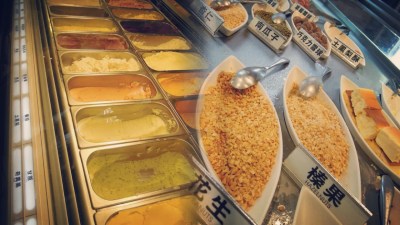 來到這除了參觀它的建築之外,宮原眼科主要販賣珍珠奶茶、巧克力、鳳梨酥等日出系列產品,隔壁就是排隊人潮不斷的宮原眼科雪糕,在兩個大冰櫃林林總總有五十多款的雪糕選兩三球再配料,單是巧克力就有超多種不同濃度的雪糕,還有水果味、茶味、眼科配方口味等,我比較推薦茶味及眼科配方的雪糕口味啦,感覺味道比水果味更為特別。而配料方面就有水果、果乾、果仁,甚至餅乾、鳳梨酥、乳酪蛋糕等,加上餅皮整個雪糕杯都很多料又吸晴,看了就好想吃也很好吃唷!