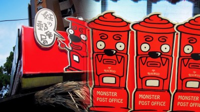甫進村首先看到的是水果店及妖之郵便局,紅紅的招牌加上卡通風的郵筒相當醒目,除了郵寄服務之外還可以買各式的妖怪商品,而妖怪村最具人氣的肯定是久保田烘焙坊!出爐的麵包也相當有特色,最著名的有「咬人貓麵包」、「山芹菜麵包」、「大蒜麵包」和「竹炭吐司」等,烘焙坊的另一面有大大的玻璃窗,可以看到麵包師傅們工作的情形唷!而門前已經有人在排隊呢,烘焙坊指定出爐時間(分別是早上十點半與下午兩點半)限量供應,太晚有可能會吃不到唷!而我們到達的時候大概早上十一點多,卡在過了第一輪又等不了第二輪的尷尬時間,所以最想吃的起司培根咬人貓麵包都沒能吃到。
