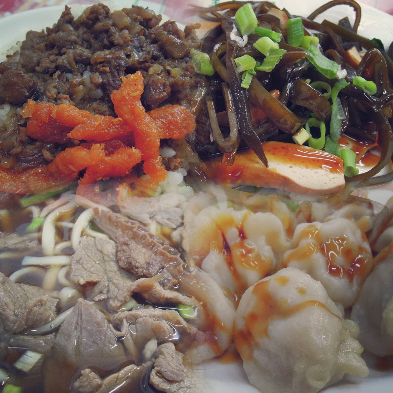 為什麼取消原定的火車班次呢…回到集集我就知道是因為沒有人流,除了假日之外集集鎮基本上是一座死城,本打算到集集古街,可惜的是集集夜市只在星期二、星期六營業,有很多想吃的例如甕缸雞、阿嫲臭豆腐、豆花等,還有什麼集集三大七大美食的通通都沒有唷!最後在平民台菜小餐館吃午飯,可幸點了幾道菜味道還不賴,有牛肉麵、魯肉飯、海帶豆乾、餃子等,我想起第一天到台中也是因為沒找到想要吃而直接在附近找吃,通常有的都是台式的小菜+魯肉飯之類…才知道好像每一家的魯肉飯都各有特色風味,還不錯啦~(安慰自己而已…)