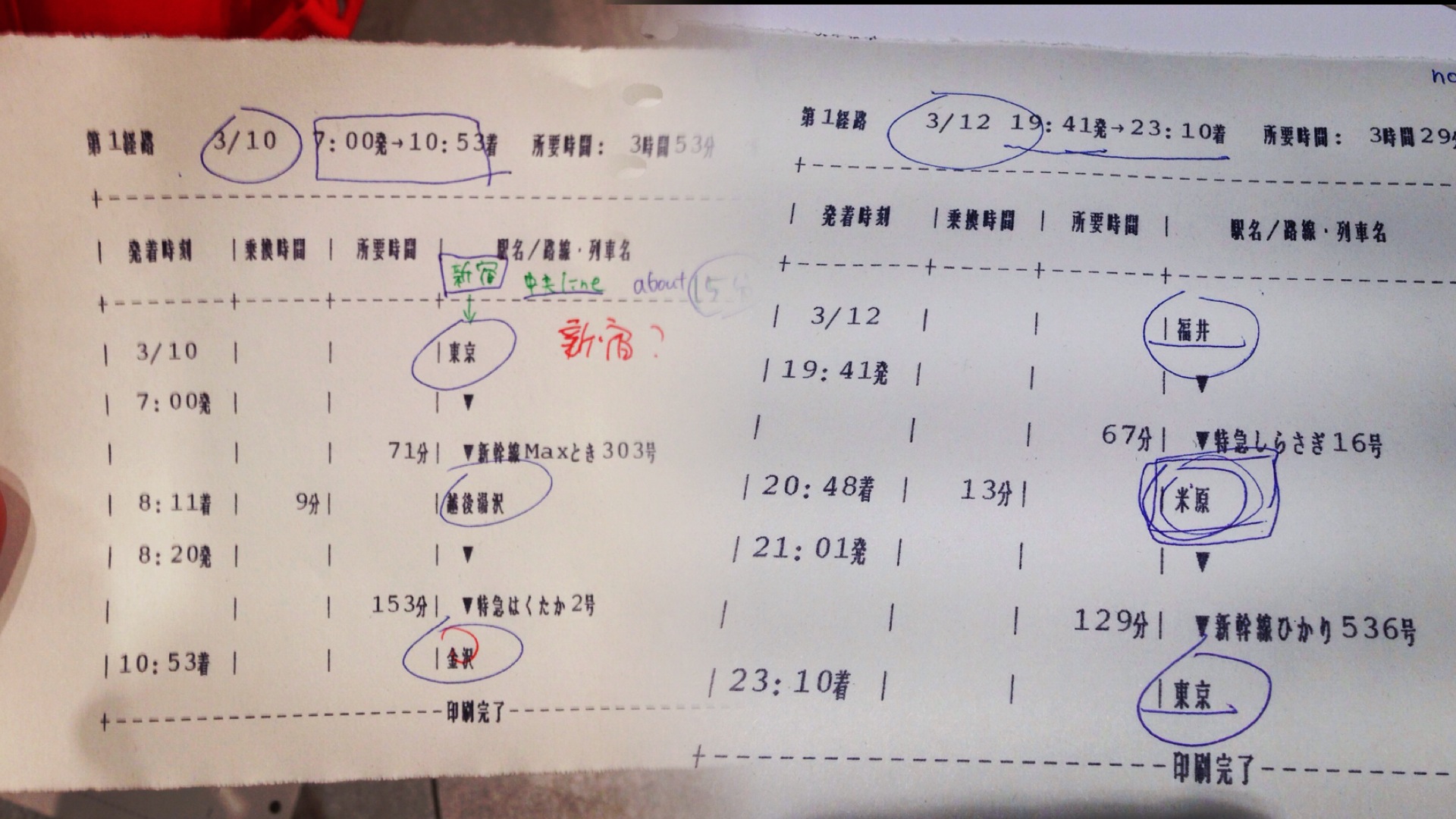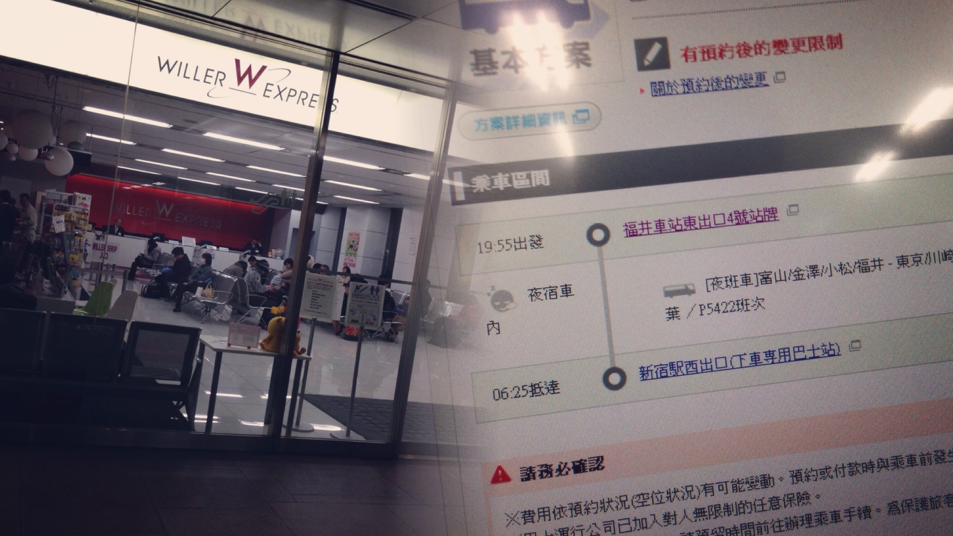 總是覺得每次旅程要搭車都會有蝦碌事件發生,在斯里蘭卡遇到過康提火車站關閉的事件,就應該沒有什麼事情會更扯,至少有別的交通方式可以乘坐;又或者即使遺失車票,座位仍然為你準備好。而這次遇到的問題是夜行巴士到底去哪兒啊?輾轉發現沒能買到夜行巴士車票,心都涼了一下以為前進北陸泡湯了,嚇到心肝都沒了…我還訂了北陸的住宿什麼的,延續的行程還要來骨牌式的泡湯嗎?天啊!接到一個黑色炸彈,給果花了大半天去拆彈!