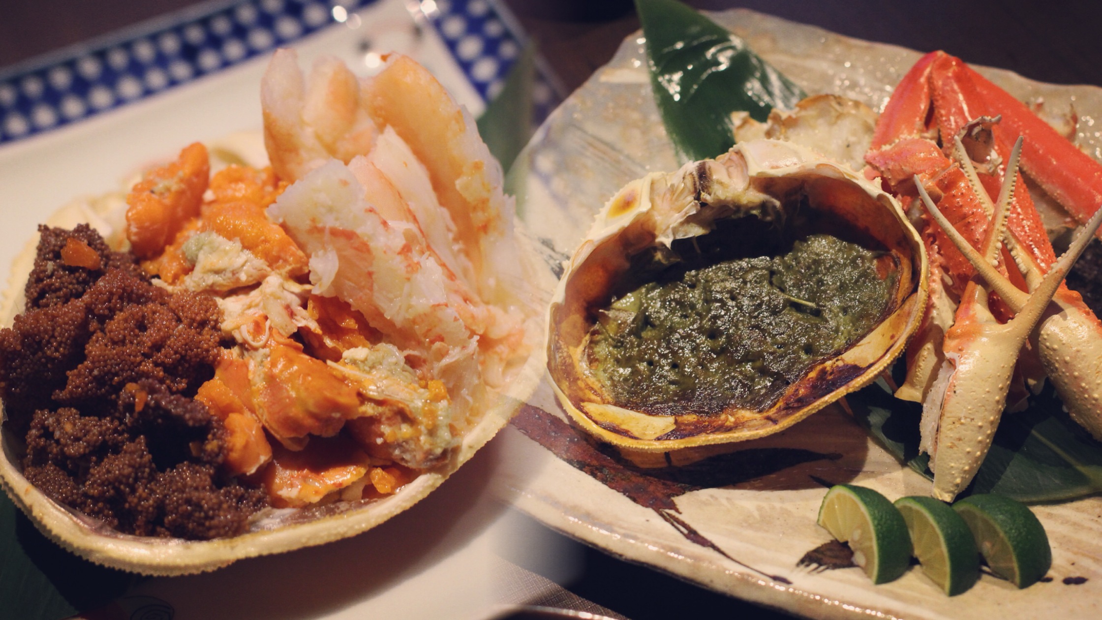 前面就有提到,只有十一月至三月期間可以撈捕的越前蟹,是因為這種螃蟹不能人工飼養只能限量捕撈,換言之嚐味期極短只有期間內來到福井才可以吃得到越前蟹,每一隻越前蟹綁有黃色牌子識別標幟,加上蟹蓋上的一顆顆黑色點點就是真品無誤(黑色點點其實是海洋寄生物,只會寄生於健康和肥美的甲殼生物上,愈多黑色點點代表更健康、肥美),產量少身價高,幾百年以來已是日本皇室的貢品呢。越前蟹的學名是「楚蟹」,在日本兵庫、鳥取、島根等地上岸的稱為「松葉蟹」,若是在福井等北陸地區捕撈上岸,則有個特別的名稱叫「越前蟹」。味道差別在哪兒就有請蟹癡講解了,以我的理解只能到好吃與不好吃的程度而已。