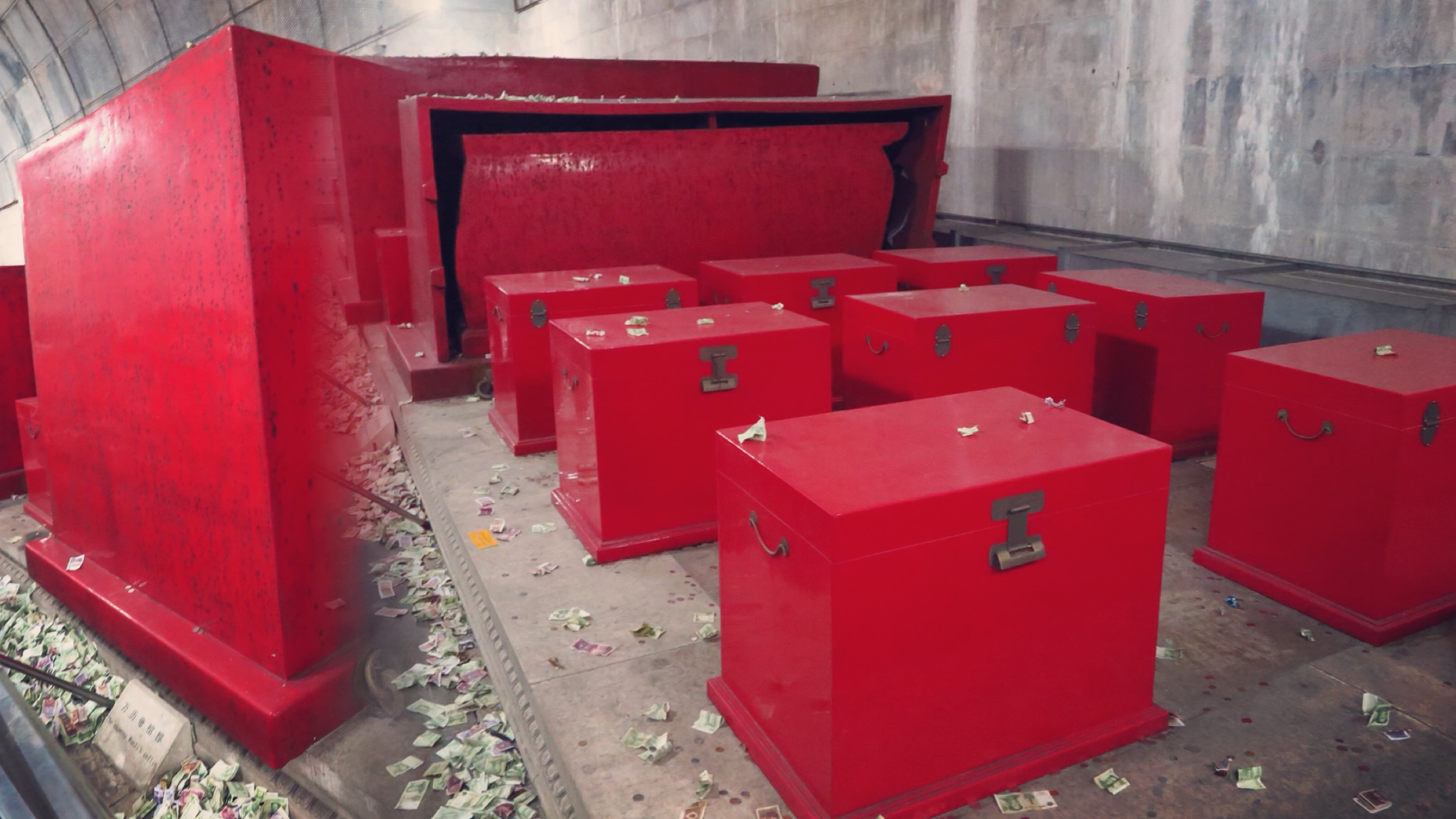 「…明定陵是中共歷史上第一座也是目前唯一一座經國務院授權發掘的帝王陵墓。然而地宮洞開後,無數奇珍異寶在接觸空氣的瞬間暗淡成灰,三口金絲楠木精製而成的巨大紅漆棺槨被人遺棄而毀壞,萬曆皇帝及其兩位皇后的屍骨被擺到定陵博物館門前的廣場上展開批鬥,在「打倒保皇派」的文革浪潮,三具屍骨被石塊擊得七零八落,此後煙灰四散飄落…」