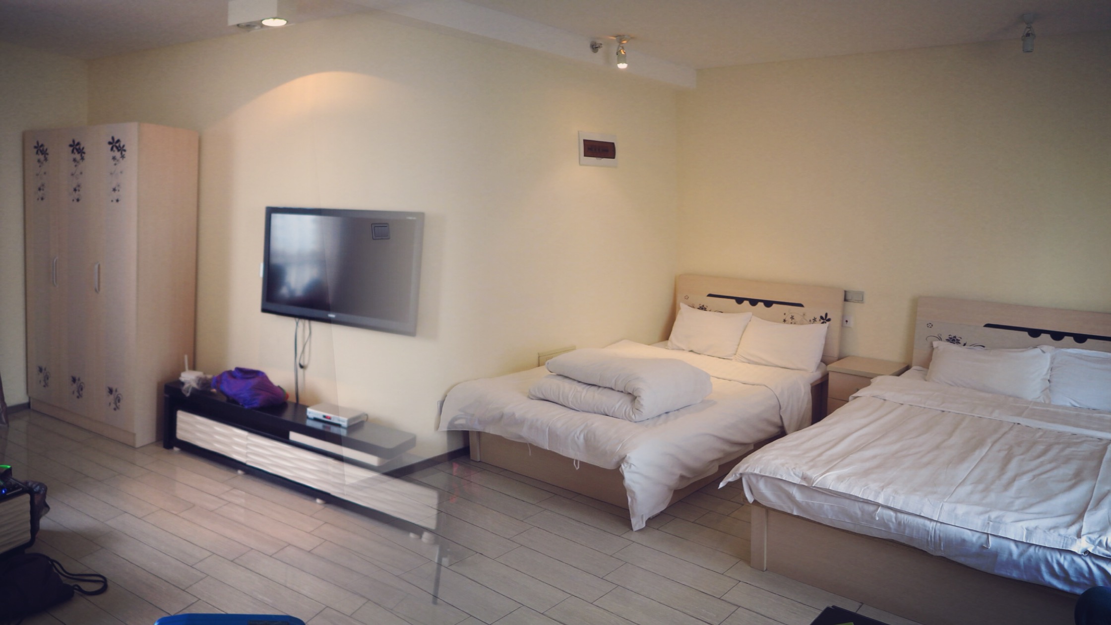 而〈東升公寓〉是我在網絡亂逛搜索到途家網找到的,其中4人房有兩張大的雙人床、大廳、開放式廚房、配有洗衣機的廁所,也有免費wifi接駁,五個人共住一個房間加被(RMB¥20)才RMB¥287唷!這間是我浪旅史上住的第一間公寓,之前一個人浪旅大多都是入住背包客旅館,甚少入住多人共住形式的公寓或酒店房,算是一個小紀念吧!與朋友晚上在公寓喝啤酒、吃零食,人人都躺在床上、沙發當低頭族上網狂打卡,好寫意的公寓生活!