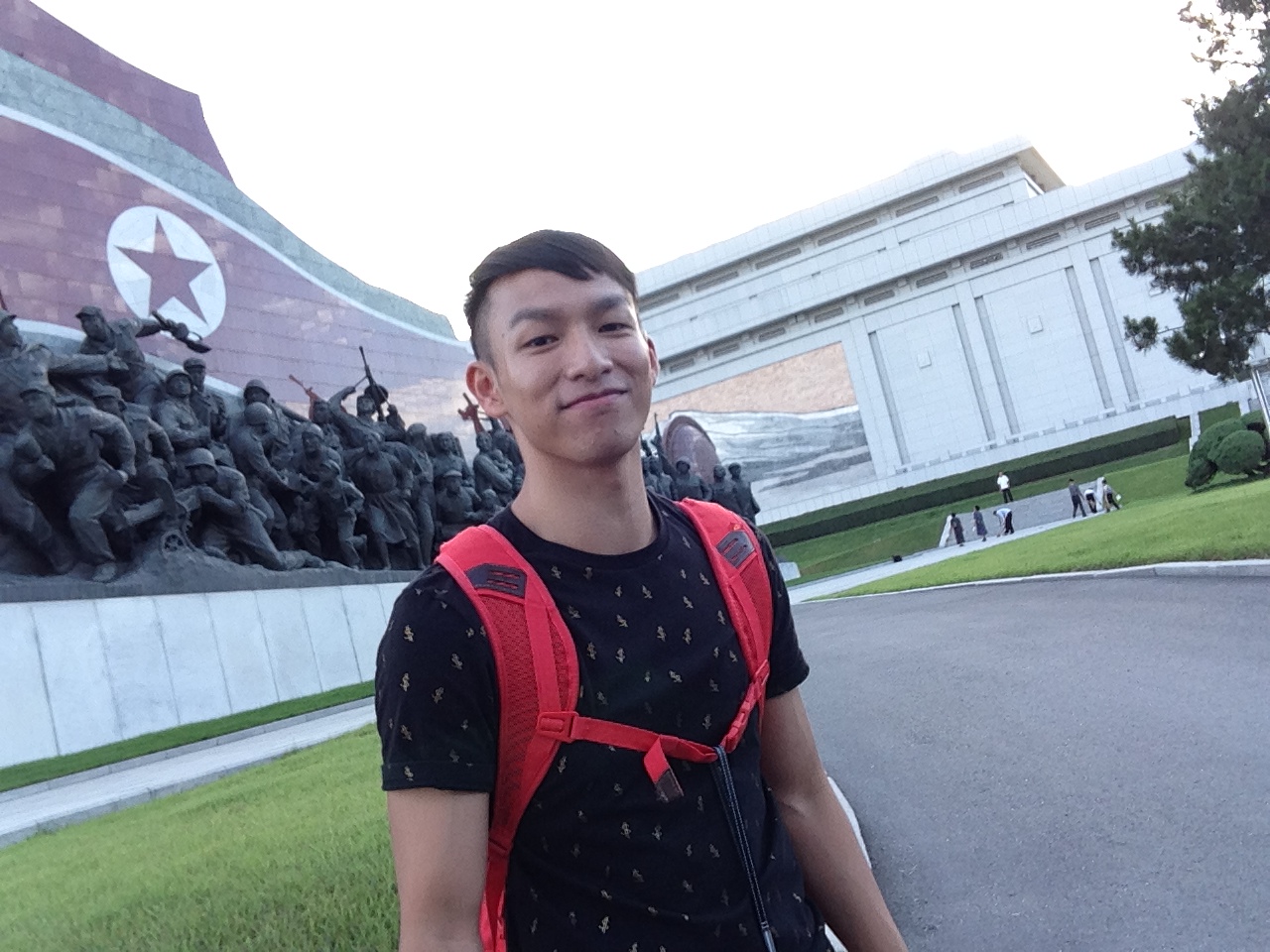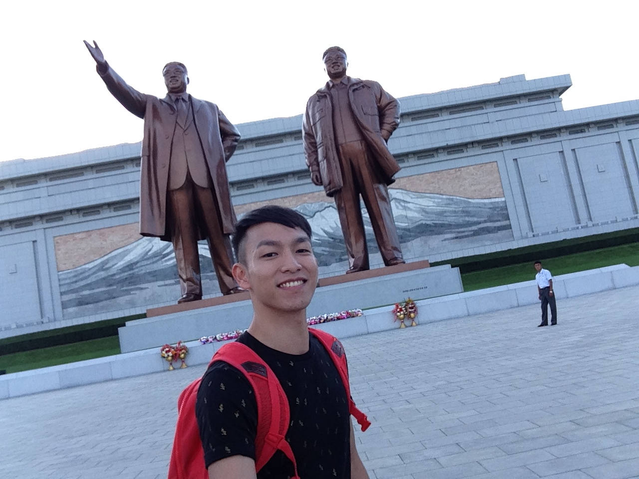 吼~真的好震憾的一個景點,大家都要狂拍照好好地記錄!一鞠躬之後轉身離開就是自由拍照時間,此前,導遊說拍照銅像要拍全身,不能只拍半身以及模坊主席的揮手動作,這會被視為「不敬」行為,我好享受那一刻的自由,拍照兼拍片,一點擔心都沒有,當下的興奮完全蓋過我來到北韓需要保持戒心的理性,只顧著拿引人注目的自拍神器一直拍,沒有人過來制止我的高科技拍照引伸的動作,連導遊都覺得神奇,到後來都有給小徐拿著自拍一下、甚至合照,HAPPY SHARE嘛!