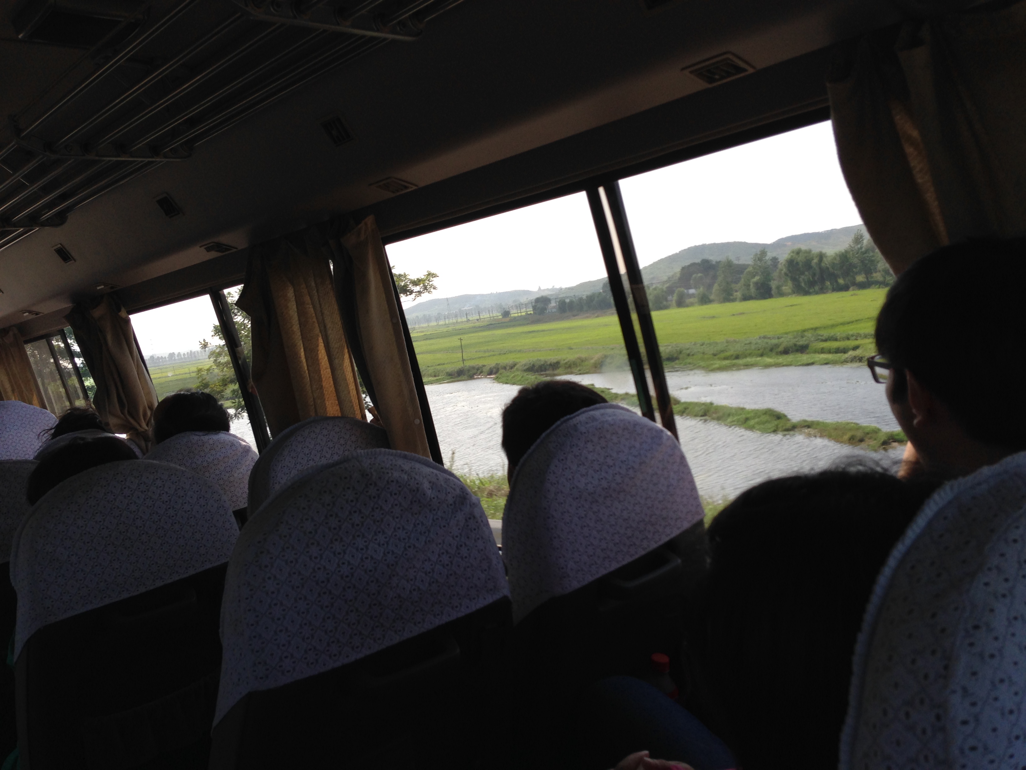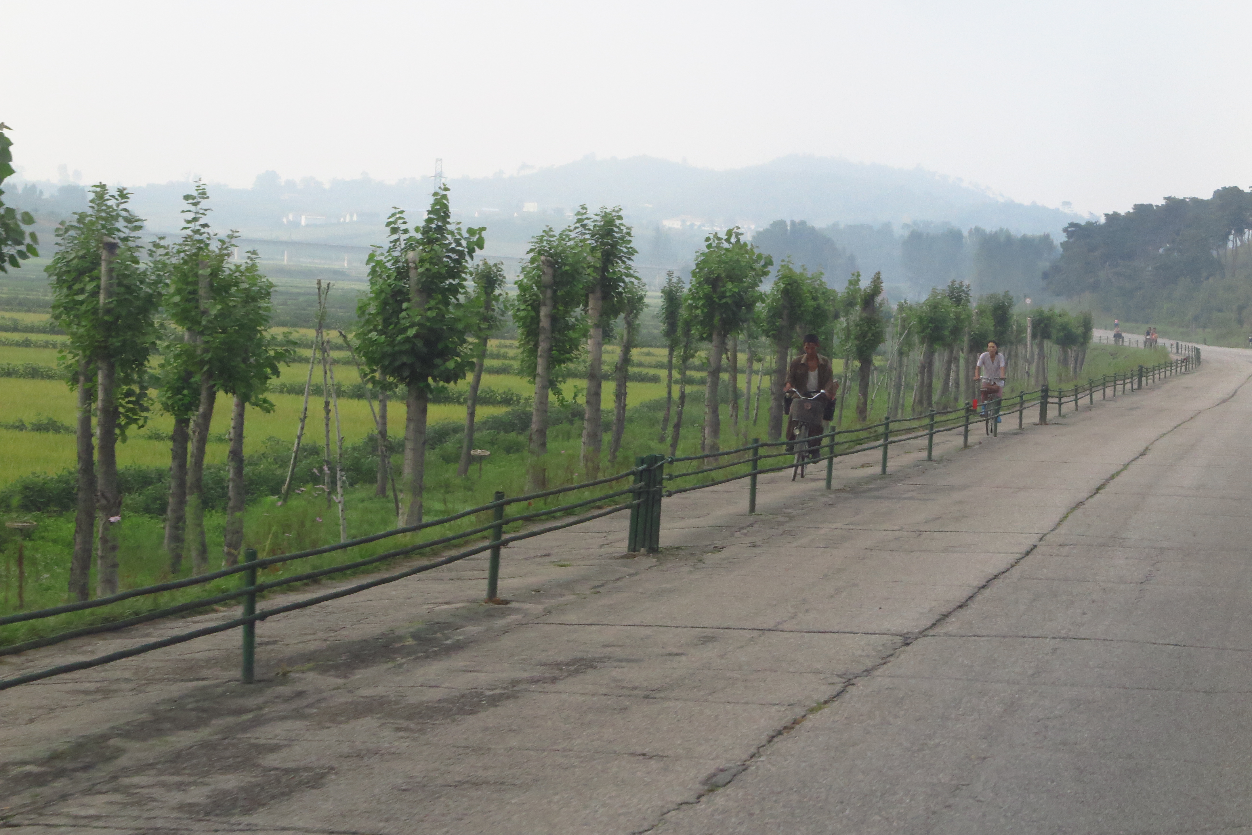 兩個半小時直驅妙香山,沿途一路上都是翠綠的田園風光,沒有化學的天然化肥,也看到與平壤的有著不一般的北韓人民,有一些是衣衫襤褸的踎在路邊、修路的工人及田裡工作的農民,看到最多的交通工具是北韓人在騎單車,除了搭載遊客的旅巴外,鮮有汽車經過,導遊說在北韓,人民要移動去其他地方或國內旅遊都需要證件才能出入,所以任何地方也不是你想去就能去得到的,有些人甚至可能一生都沒去過平壤首都,我想導遊算是一份高級的工作吧。