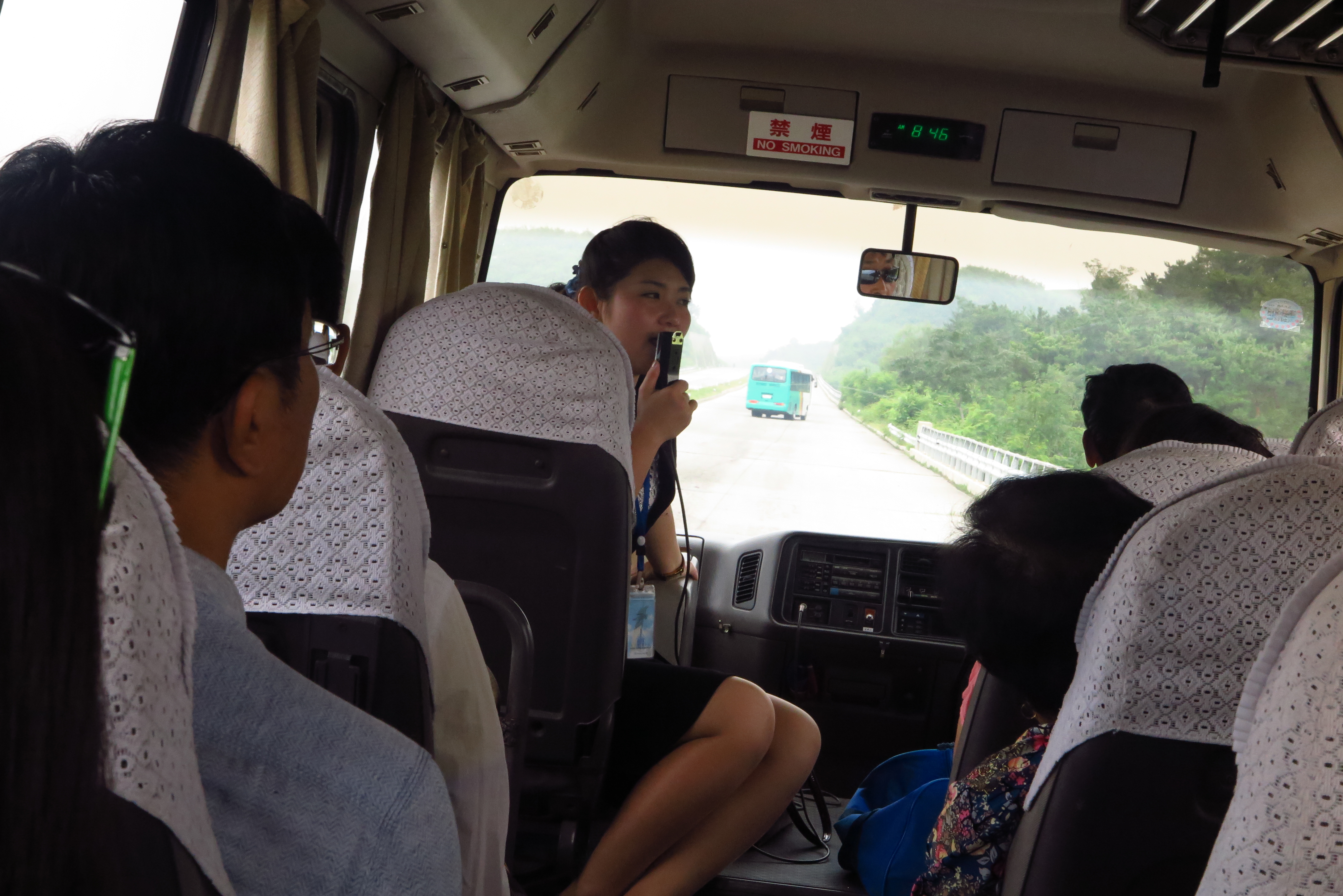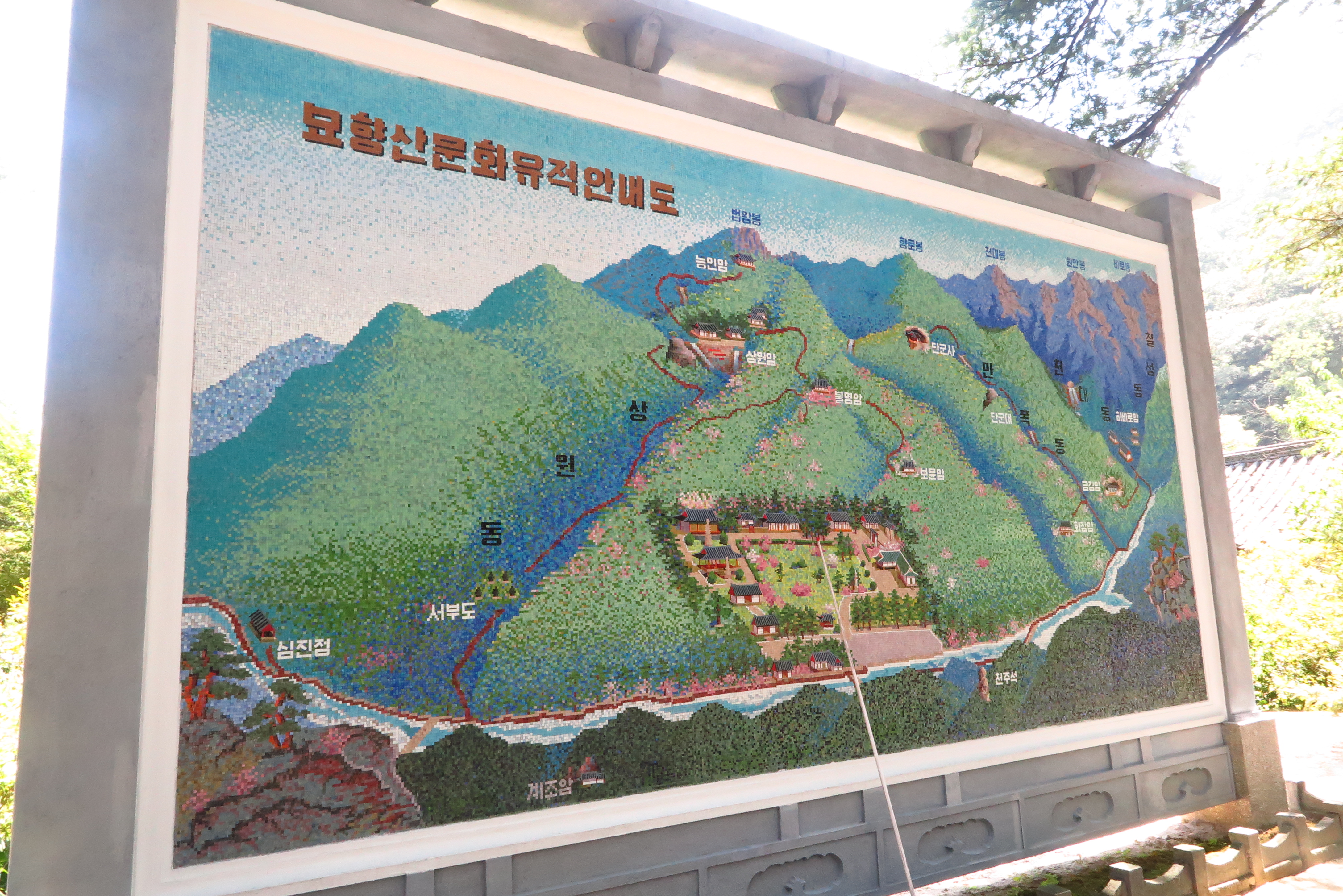 逐漸遠離平壤之後,前往妙香山的景色比較貼近正常該有的自然環境,也不算是不毛之地,周圍還是綠意盎然的,也有小橋川溪的美麗風貌,說實話真的很美呢!一開始大家都專心著看風景,也有跟導遊聊天甚至學韓文,過程暢談甚歡,都沒有什麼忌諱的,期間導遊更加高歌幾曲〈阿里朗〉、〈賣花姑娘〉,甚至連中文歌〈童話〉都會唱呢,同時也一邊解釋阿里朗是一個愛情故事云云…就是這樣兩小時多就過去了。