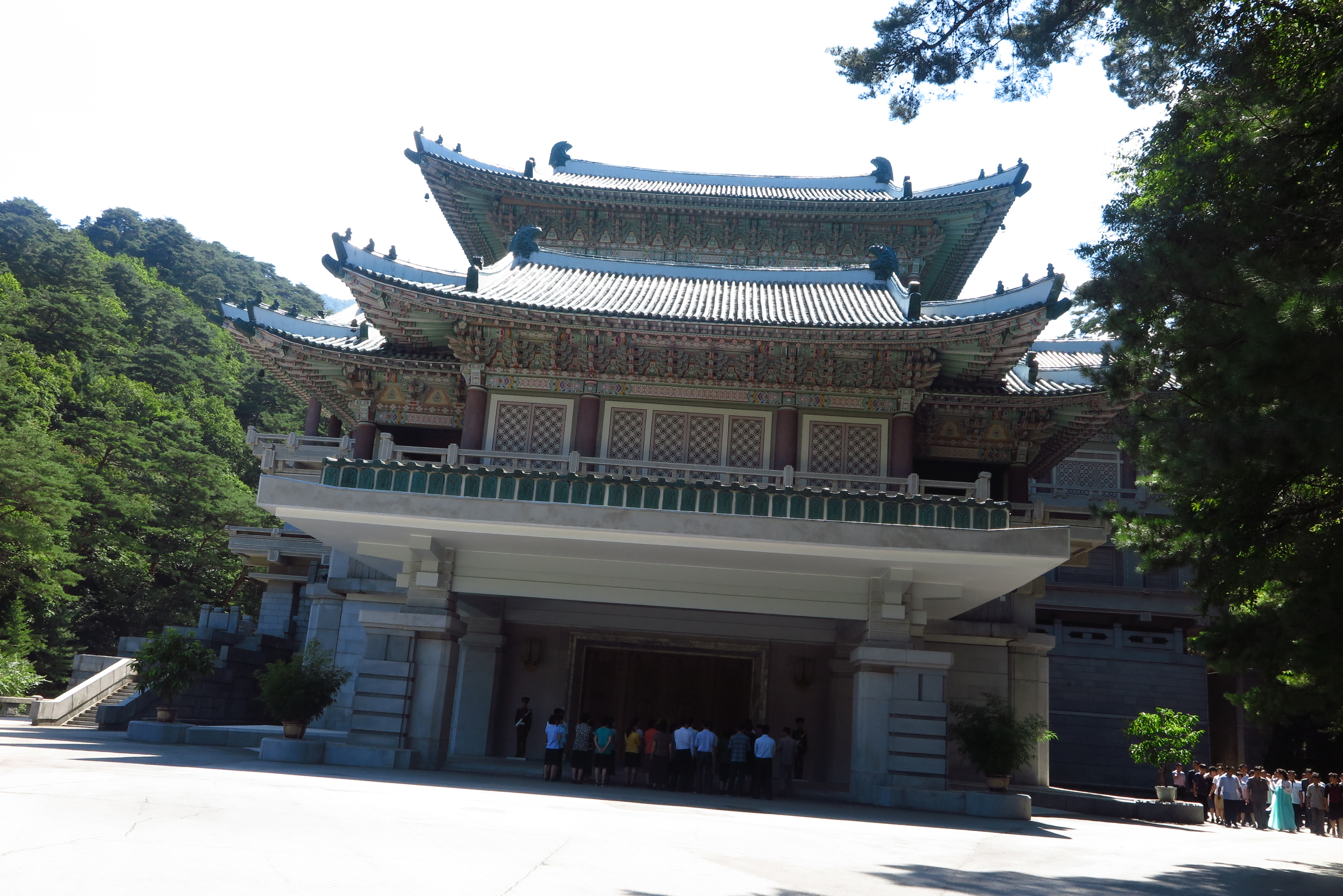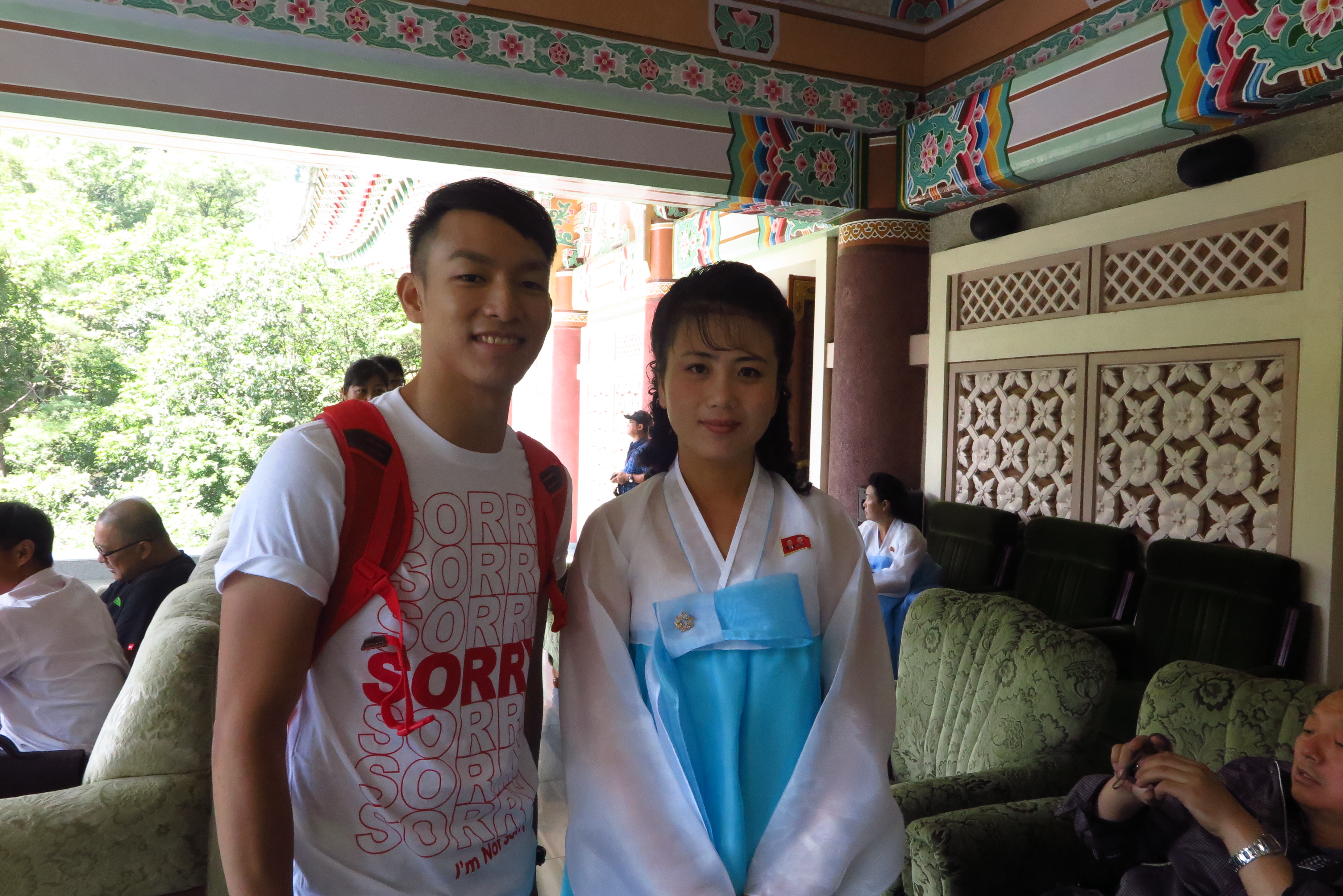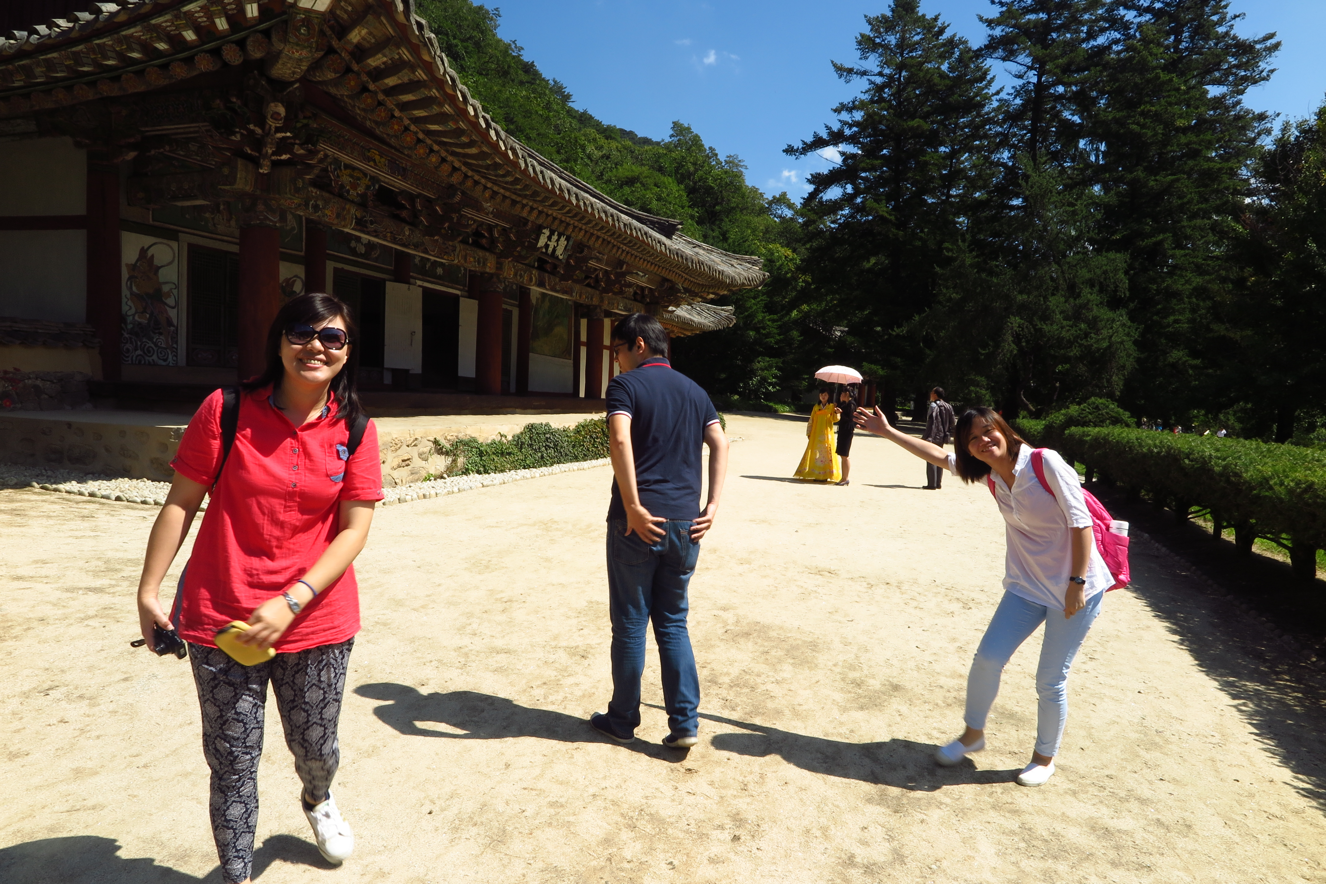 來到翠綠常青的妙香山,一心以為要來踏青聽鳥叫,誰不知中伏在國際友誼展覽館,隨後到身處深山的「普賢寺」,誰不知又來一個普賢寺的講解員帶領參觀,導遊前後包抄趕鴨仔,這次大部分時間我都撤底地不管講解員及導遊的引領,一直都是「落單團友」,講解員的介紹講過什麼呢?我也不知道,只顧著在寺內四處走、玩自拍,也趁機逛一下北朝鮮的寺廟、庭園,這裡的環境風景算是蠻漂亮的,加上藍天白雲、空氣又清新,一掃之前積壓著的悶氣。