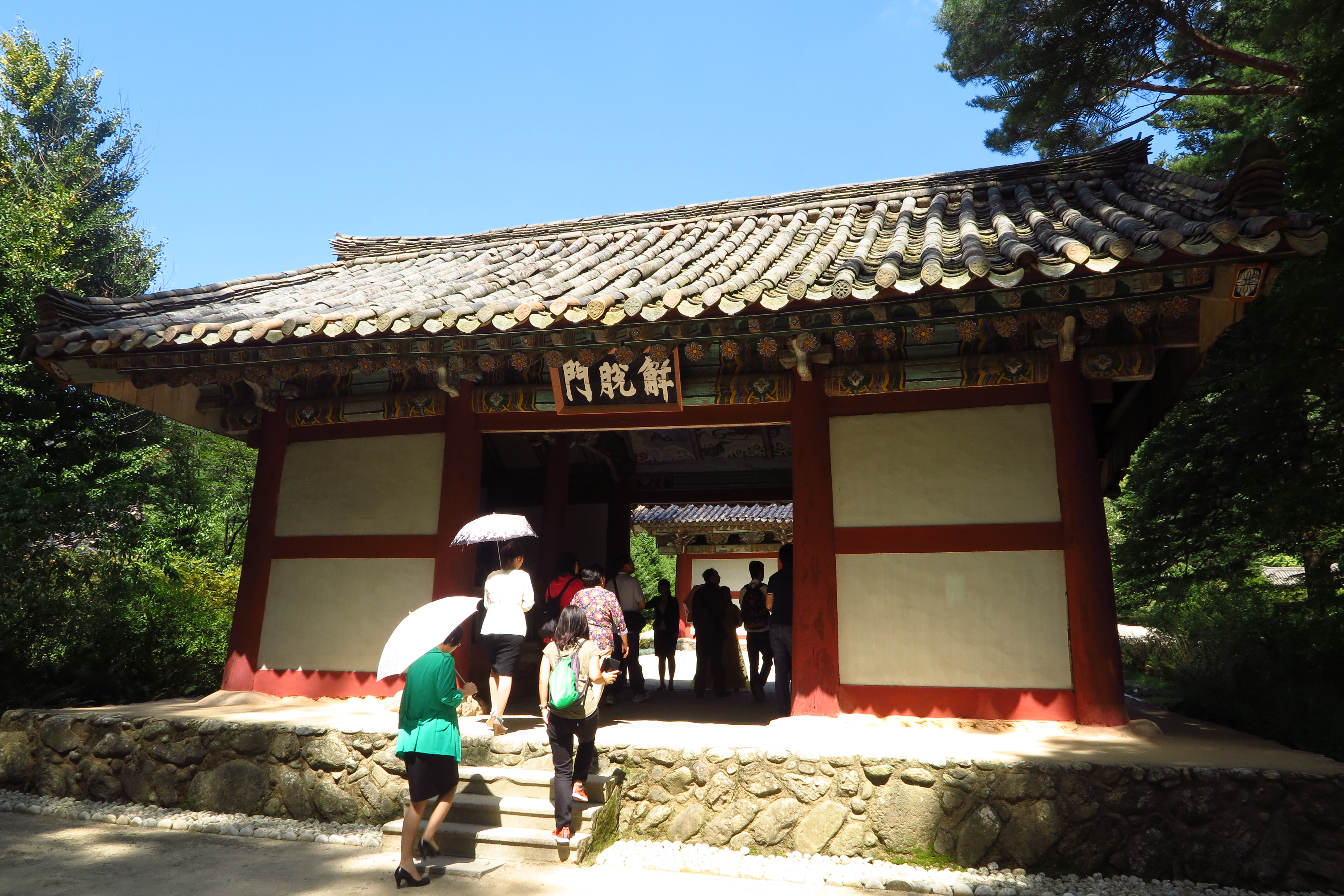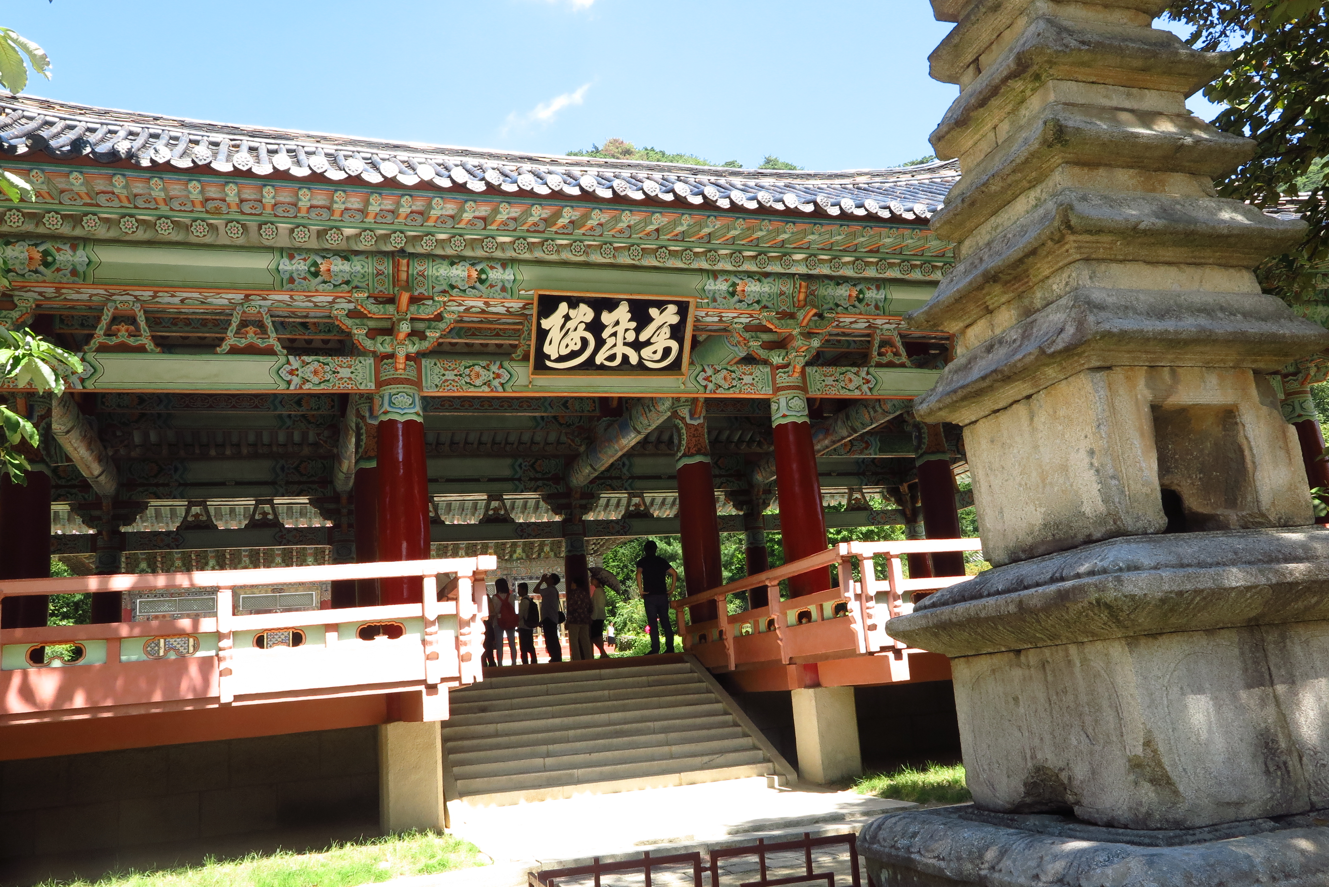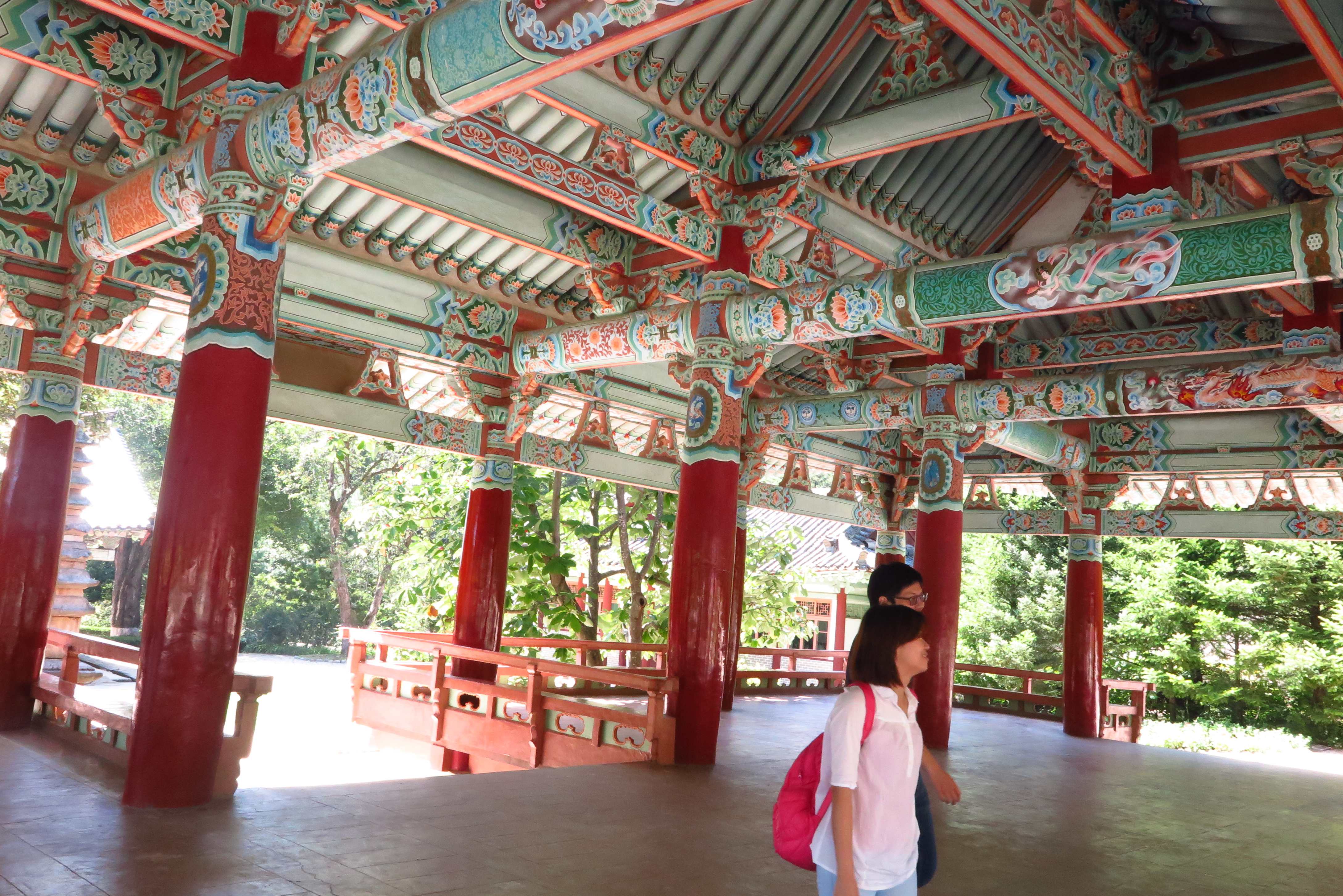 來到翠綠常青的妙香山,一心以為要來踏青聽鳥叫,誰不知中伏在國際友誼展覽館,隨後到身處深山的「普賢寺」,誰不知又來一個普賢寺的講解員帶領參觀,導遊前後包抄趕鴨仔,這次大部分時間我都撤底地不管講解員及導遊的引領,一直都是「落單團友」,講解員的介紹講過什麼呢?我也不知道,只顧著在寺內四處走、玩自拍,也趁機逛一下北朝鮮的寺廟、庭園,這裡的環境風景算是蠻漂亮的,加上藍天白雲、空氣又清新,一掃之前積壓著的悶氣。