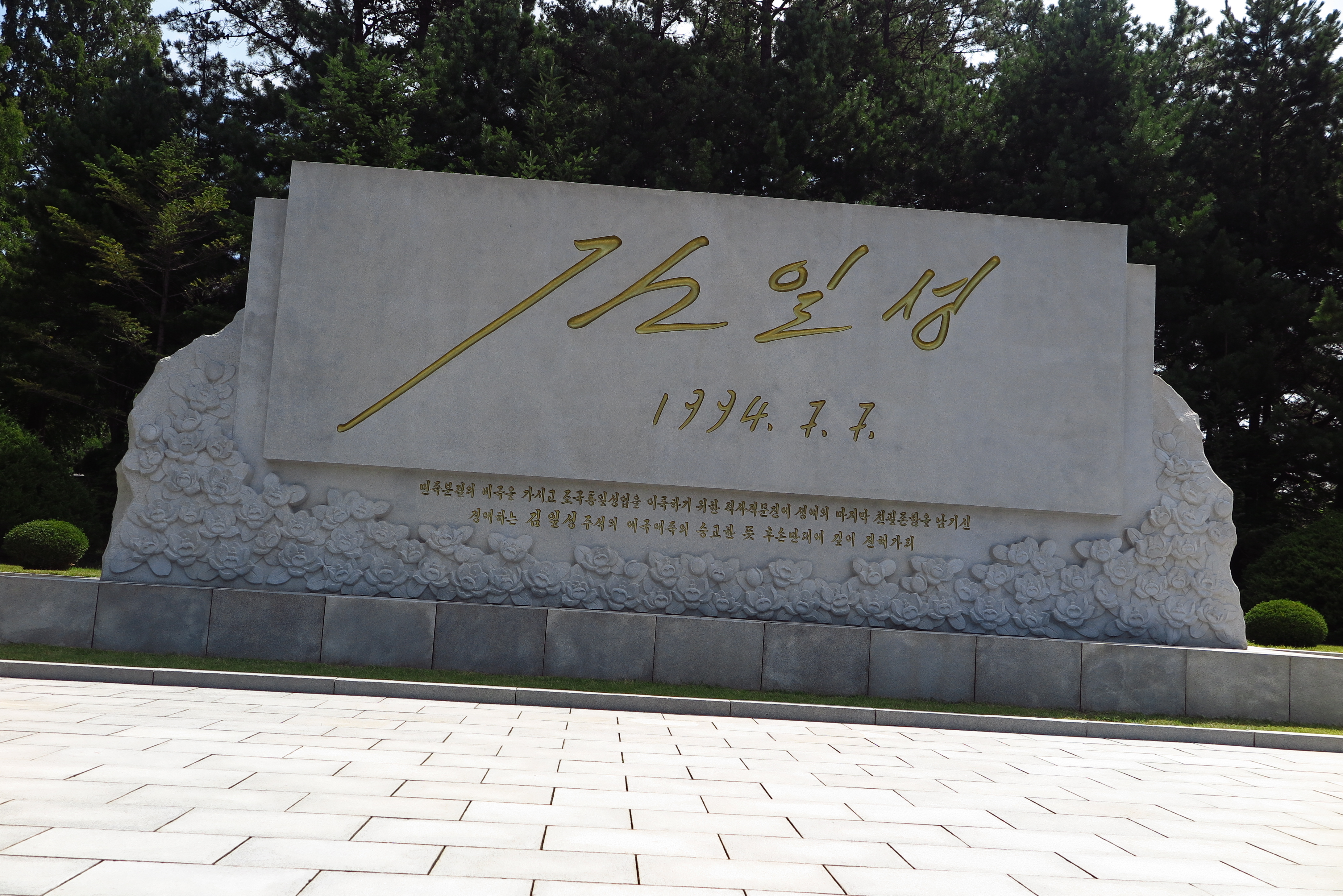 再次走到外面,來到金日成簽字碑前,又再一次像國際友誼館般,向一塊大石頭一鞠躬,其實我對鞠躬這點事都沒什麼印象了,只記得那天陽光很曬,即便有敬應該沒有用力去敬,也不想敬啦!區區一塊大石頭紀念金日成的來訪就要鞠躬,有什麼好致敬的,又不是萬壽台!然後看到遠方有支國家旗杆,上面懸掛著朝鮮國旗,據說北韓為了與南韓爭面子,建設高一百六十米的旗杆,亦成為世界最高的旗杆,一切皆浮雲啊!不論建得有多高南韓應該都不屑一顧吧!