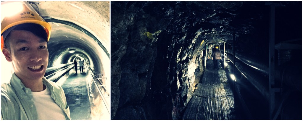 接著到第3地道資料館,第3地道於1978年被發現北韓為攻擊南韓時所使用的地道,總長1,635米,當局在200米處設置隔離牆,並開放遊客參觀。來到現場當然要走下去地道,先經過後來加建的長斜道通往第3地道之後,沿路一直走可以去到隔離牆的位置,地道相當狹窄又濕冷,不時有水滴落,而全程需要彎身穿過,不然容易撞倒頂部,所以必須戴頭盔保護,難為身材高大的歐美遊客一直「扎馬步」屈腳前進…
