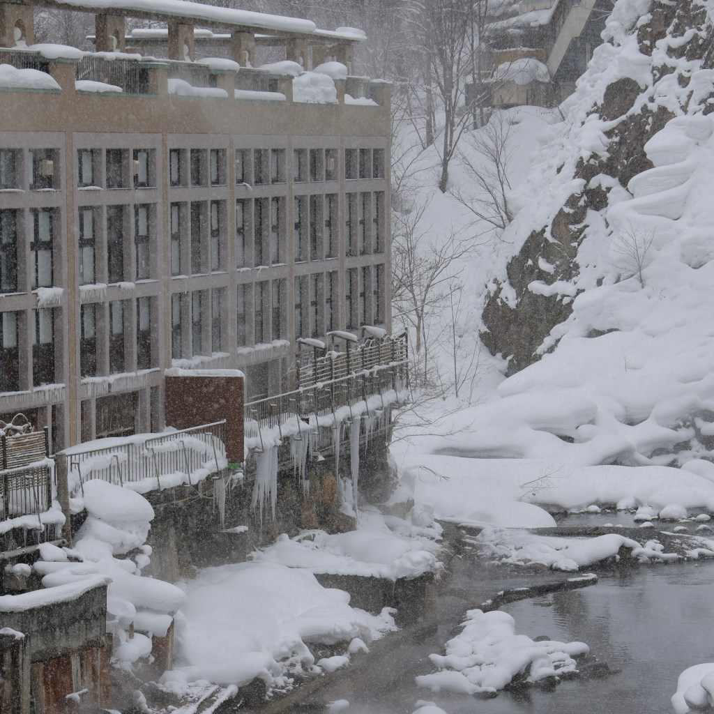 早上又去浸溫泉,寒意襲臉暖身喚醒睡意,男生澡堂有兩個熱泉內湯,分別是42℃和35℃,也有「鹿の蒸」桑拿房,浸一浸、焗一焗驅除寒氣,身體血色回饋全身,瞬間放鬆舒緩肌肉繃緊的不適感。比起前一晚的溫泉,日間能夠欣賞定山溪的河川流水,最正當然係經過冷顫顫的玄關,急急忙忙地衝去室外的露天風呂,伸手就能摸到積雪,融化在手掌中,就這樣沉浸在煙繞間的矇矓視野中,好爽呢!