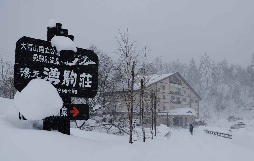 列車破雪闖道東,一邊吃著北海道限定的冬御膳鐵路便當,窗外走馬燈一直下大雪,雪花的重量使它飛舞亂竄,道東鄉間平路的積雪以米計,如沙漠高低起伏,各路主要幹道出動剷雪車,堆成路邊無盡頭的矮牆拱坡,又沒有黑灰色的髒雪,刻下看見的環境都很夢幻。抵達旭川市,準備轉乘66番線專車前往旭岳,原先打算租車自駕上山,但考慮到暴風雪吹襲仍雪紛橫飛,加上降雪量驚人,擔心路不熟會陷入雪地裡,安全至上以鐵路、接駁專車為交通手段,改搭專巴前住旭岳大雪山,是最明智的決定!