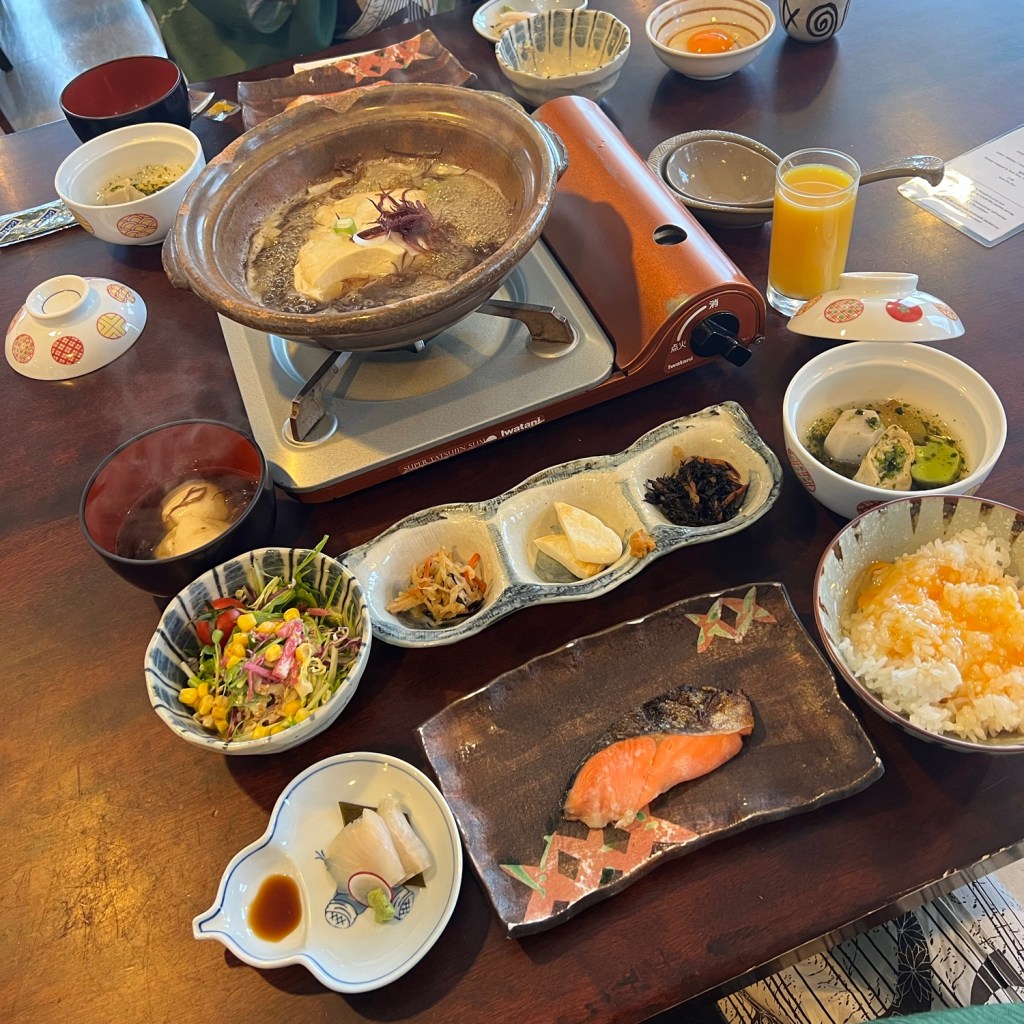 中庭大廳有石頭堆建的古樸壁爐,在冬季會點火讓室溫更溫暖,坐在沙發放空輕看著搖曳火焰,更特別的有天然水口可以盛飲,湧駒水的味道?富含礦物但沒有很重的礦物味,且很冰涼只有7°C的水溫,據說是數百年後的旭岳積雪融化,湧出地下水成為湧駒水的來源,浸完溫泉可以大啖飲,補補水、解解喝。