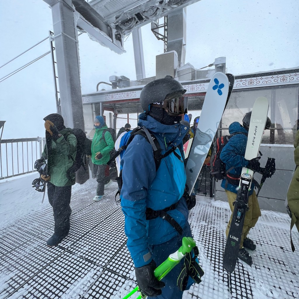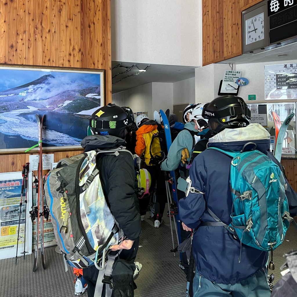 一大早來到大雪廳享用豐盛早餐,主打豆腐鍋外也有漬物、生魚片、炭烤三文魚和究極醬汁拌蛋飯,鍋物暖肚又有撈蛋飯飽肚,整個人都活過來了。整裝待發出發,搭上前往旭岳山麓站的頭班車,同路人還有三位滑雪人士,到達纜車站後發現現場等候的登山客,看著身上裝備大概是來滑雪的,像我們的登山客確實比較少,或許雪暴過後的天氣不太好,強風刮起雪花飛舞,能見度極之低,更遑論會有慰藍的天空,既然有預訂溫泉旅館,纜車線也沒有封閉,就看看登山沒有遊客是怎樣的境況,且人不多正中我心意。