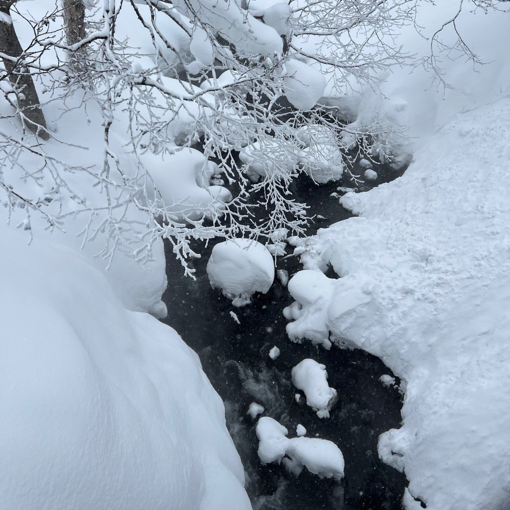沿路登山漸漸地,車内變得愈來愈嚴寒似冷藏庫,不消一會就來到千米高的大雪山國立公園-旭岳溫泉 湯元 湧駒莊,別以為上升千米會下降6°C,實測氣溫-15°C,而體感氣溫是-24°C!下車後風雪依然吹打著臉,四周都是白濛濛的雪景,往下一點就是駒止瀑布,聽著潺潺的流水聲,走過木橋看見雪花緩緩飄落到山溪,一座背靠著披雪針葉林,臨山溪而建的溫泉旅館,就在我眼前,猶如艾倫戴爾王國的深山別墅,有近百年歷史的老牌溫泉旅館,早期為湧駒別温泉的湯小屋,期後新建宿泊設施成溫泉旅館,風呂依然如初。