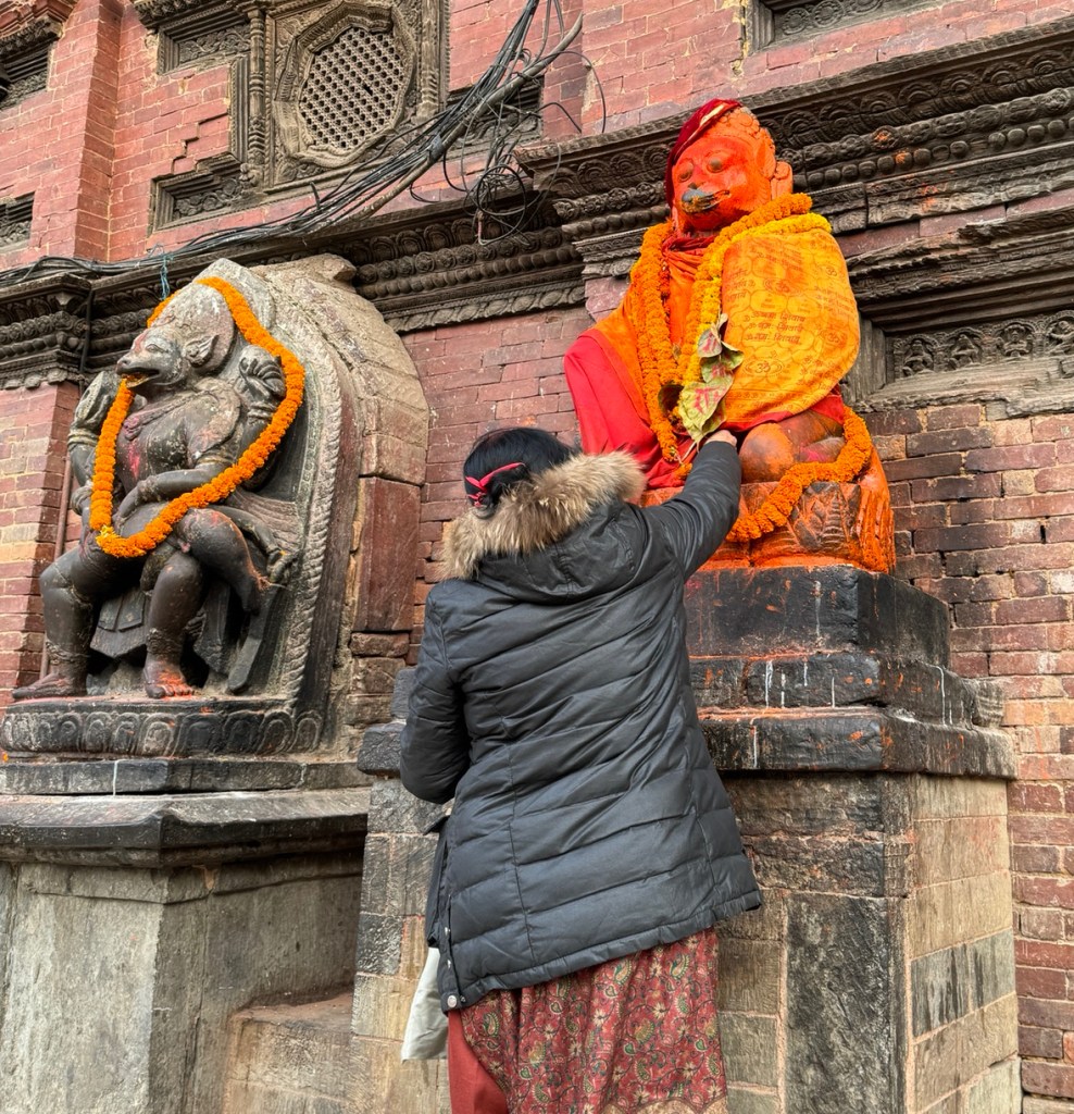 從加德滿都南下到帕坦古城,Wo~一落車就見到「孫悟空」,帕坦杜巴廣場的入口有哈奴曼猴雕像,神話故事裡闡述祂力大無窮,且任意變幻身型與長相,也是毗濕奴神的第七個化身—羅摩王最忠實的夥伴與僕人,讓我陷入《西遊記》般的時空意境,後來翻查原來有不少人認為祂是「美猴王孫悟空」的原型!