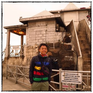 爬到後半段真的累到爆!加上山上風寒刺骨又下雨,冰冷的風不斷吹打著臉,手腳也開始凍到僵硬,拾級而上爬上去很吃力,接近頂峰的樓梯又愈呈跨度大且狹窄,雖然有扶手欄杆可以抓住把自己拉上去卸力,而言冰冷的手抓住滴著水滴的金屬扶手實在苦不堪言,如果把我整個人凍齡就好了~哈…冷到一直哈氣都沒管用!雨水把我整個人都半濕了,帶上帽子低著頭咬緊牙關繼續爬吧!站在高處真的不勝寒呀!要救命了!(顯然是穿得不夠吧!)