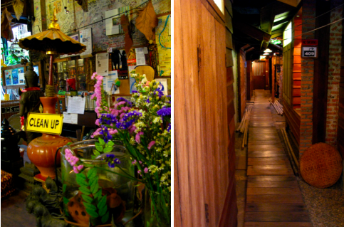 左:古靈精怪的擺設 右:木板走廊(中看不中用,早上/晚上有人走路可能會有點吵)